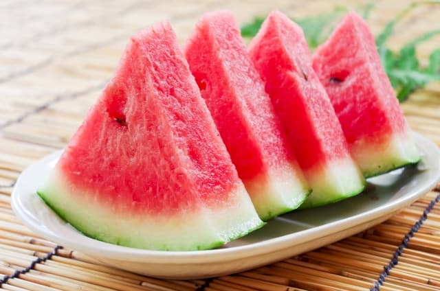 Chilled and sliced or chunked watermelon is one of the most popular desserts or snacks to eat in summer in Japan.